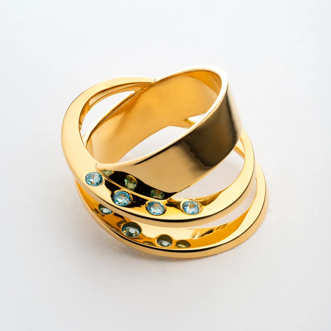 Кольцо Галактика — позолоченное кольцо с бирюзовыми фианитами в оригинальном авторском дизайне.